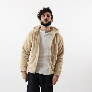 柔らかい肌触りでふわふわと毛足が長く、上品な光沢が魅力のシェルパフリースを使用したジップフーデッドジャケットです。軽い素材でありながら、多くの空気を含むことによる保温性の高さが魅力。日常使いはもちろん、シーンを選ばず着用できるユーティリティアイテムです。アームホールの縫い代部分に抗菌・防臭テープを付けました。