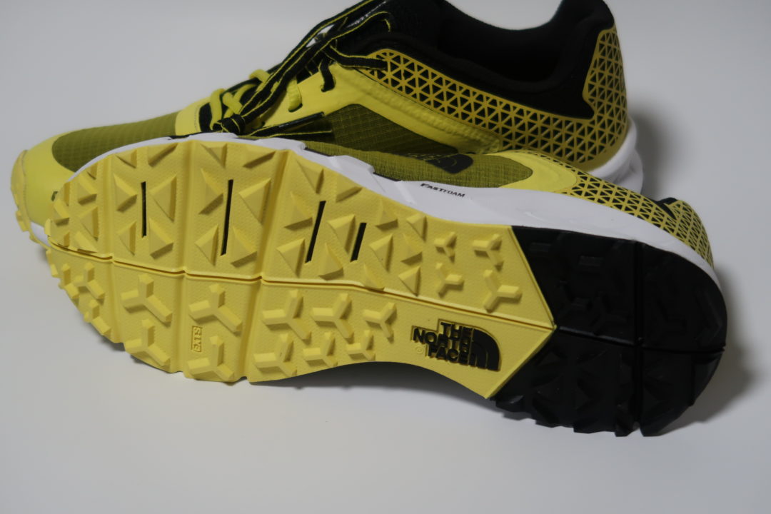 こだわりのアウトソールはトレイルでの加速と減速、屈曲性のパフォーマンスを高めた、THE NORTH FACE独自開発のEXTS™システム